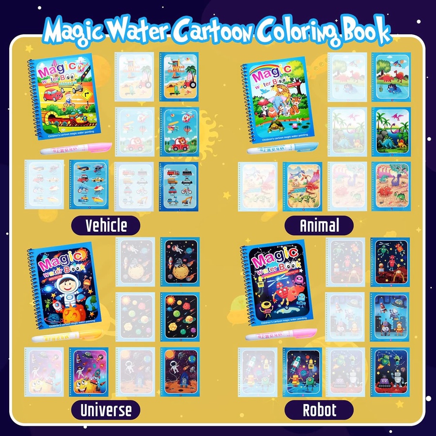 ✔ كل كتاب يحتوي على 9 صفحات تلوين + قلم سحري مجاني