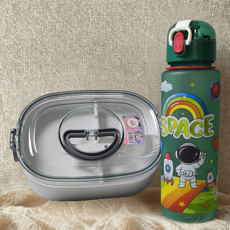 عرض العودة للمدارس 2026 من MINI HOME لانش بوكس عملي يحافظ على الأكل + فلاسك / زجاجة مدرسة 2026 محكمة الغلق تمنع التسريب بسعر مميز 180 بدل 225 اطلب الآن